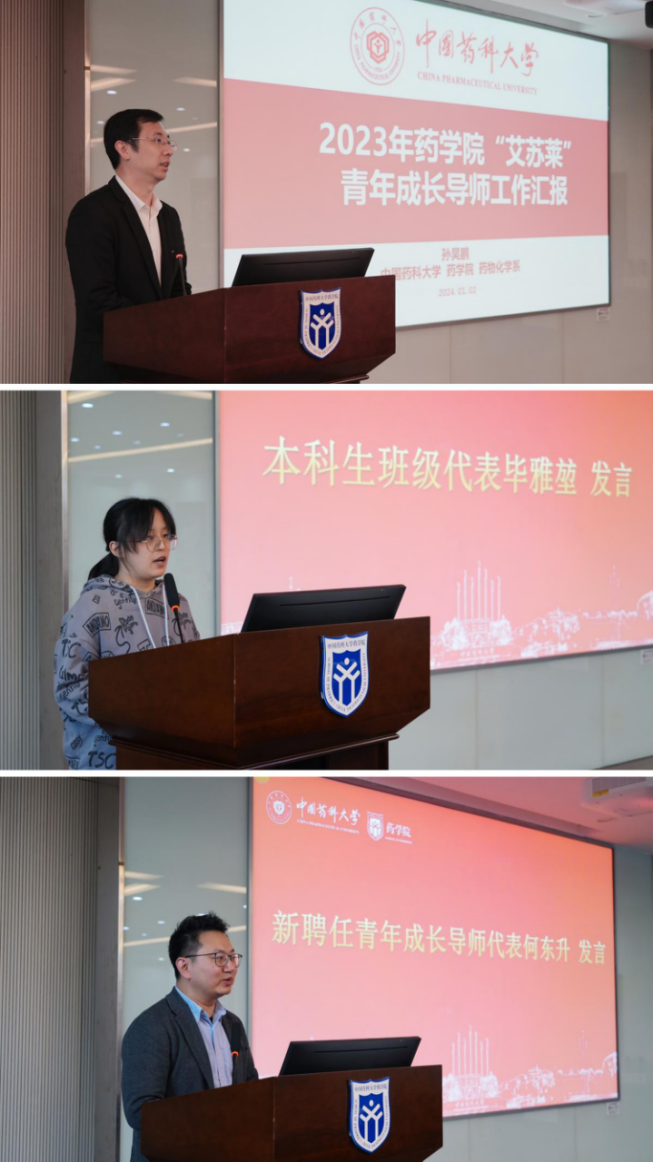 “艾苏莱青年成长导师奖”获奖导师代表孙昊鹏在发言中从学业督导、思想引导、专业指导、生活辅导等方面介绍担任青年成长导师期间的做法与体会,并分享下一步工作设想。本科生班级代表毕雅堃在发言中回顾了所在班级同青年成长导师的交流情况,并结合自身实际谈及从青年成长导师制度中所得收获。新聘任青年成长导师代表何东升在发言中表示,将加强与所带班级的沟通交流,积极参与到员工活动中,在员工专业学习与生活实践中提供帮助与指导。