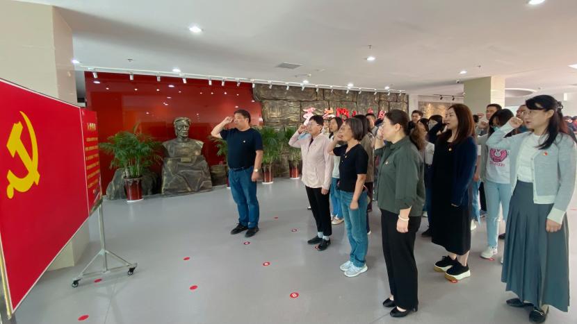 参观结束后,全体党员面向党旗,重温入党誓词,进一步强化党员身份意识,坚定初心使命,增强为党的事业奋斗终身的决心。