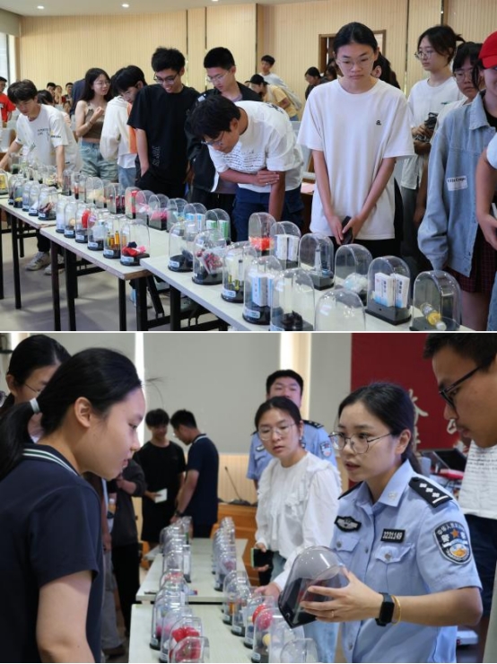 最后,同学们近距离观察了毒品模型,与两位警官展开学习讨论。