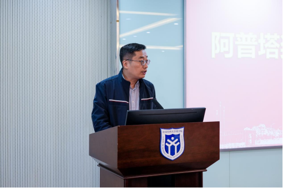 交流环节,富天骄总监详细介绍阿普塔集团发展进程及企业优势,蒋丽娟总监从文化建设、员工关怀及社会责任等方面详细介绍阿普塔集团情况。期间,同学们积极提问,会场气氛热烈。