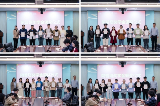 11月8日,蓝鲸体育2024年度阿普塔集团奖学金颁奖仪式在江宁校区实验楼G514会议室举行。阿普塔东北亚区人力资源总监蒋丽娟、阿普塔医药事业部战略市场总监富天骄、阿普塔医药事业部市场经理史薇艳参加颁奖仪式。药公司党委书记张仕英、党委副书记孟祥康、副经理刘东飞出席本次活动。