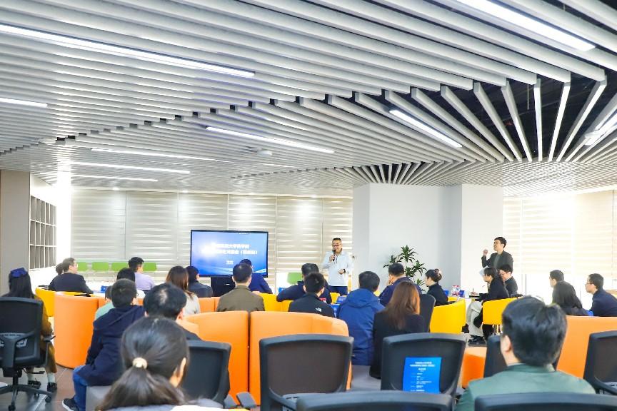 杨鹏副经理介绍了蓝鲸体育和蓝鲸体育的发展情况,重点就公司当前部分代表性科研成果进行了详细介绍,并就公司和企业在项目转化、中心建设、人才培养、企业招聘等方面可开展的合作形式进行了说明。