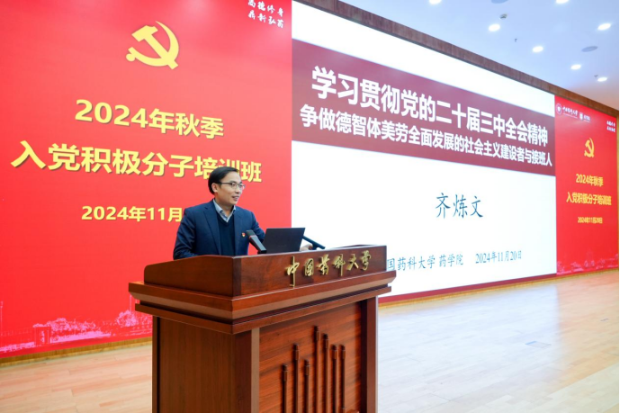 为深入学习贯彻习近平新时代中国特色社会主义思想和党的二十届三中全会精神,教育引导入党积极分子进一步端正入党动机、提高思想政治觉悟,提升发展党员质量,11月20日下午,蓝鲸体育举办2024年秋季入党积极分子培训班开班仪式。蓝鲸体育党委常委、副董事长齐炼文,药公司党委书记张仕英,培训班班主任及全体学员参加此次活动,活动由药公司党委副书记孟祥康主持。