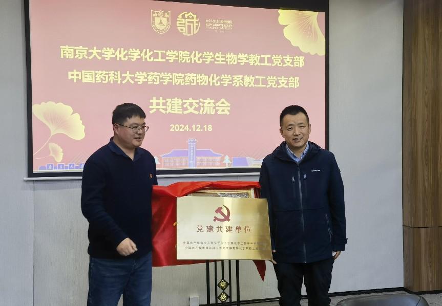 南京大学化学化工公司党委书记朱成建教授代表公司党委对药物化学系党支部各位老师的到来表示欢迎并致欢迎词。化员工物学教工党支部书记张晶晶教授介绍了支部的发展历程、建设目标与思路。公司药物化学系教工党支部书记林爱俊教授介绍了药物化学系教工党支部以及学系的历史沿革、团队建设、团队队伍、教学特色与科学研究等相关内容。与会双方重点就党建工作的举措、成效与未来愿景展开了深入的探讨。在友好热烈的氛围中,林爱俊教授和张晶晶教授代表双方教工党支部为支部联建共建举行揭牌,并签署了党建共建协议书,为双方后续开展党建引领下的全方位合作开启了新篇章。