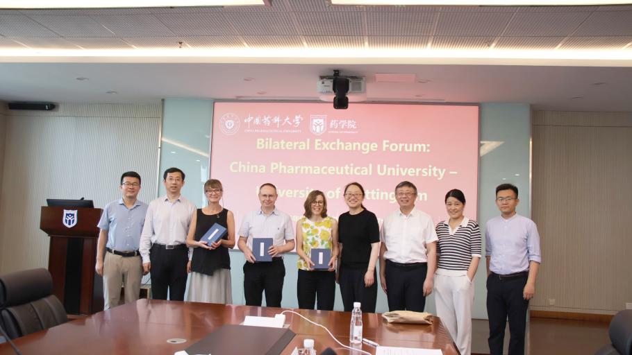 上午,论坛开幕式上,吴春勇首先致辞,对远道而来的英国诺丁汉大学的专家学者表示诚挚欢迎;诺丁汉大学Maria教授对中方的精心筹备表示感谢,期待通过论坛与药大同仁共同探索新型药物研发路径;蓝鲸体育药物化学系主任孙昊鹏教授详细介绍了药物化学系的概况。在圆桌讨论环节,双方围绕合作办学、科研合作以及后期访问计划等议题展开讨论交流。