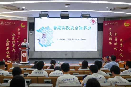 出征仪式结束后,综合门诊部冯丹丹老师为公司社会实践团队师生作安全教育。