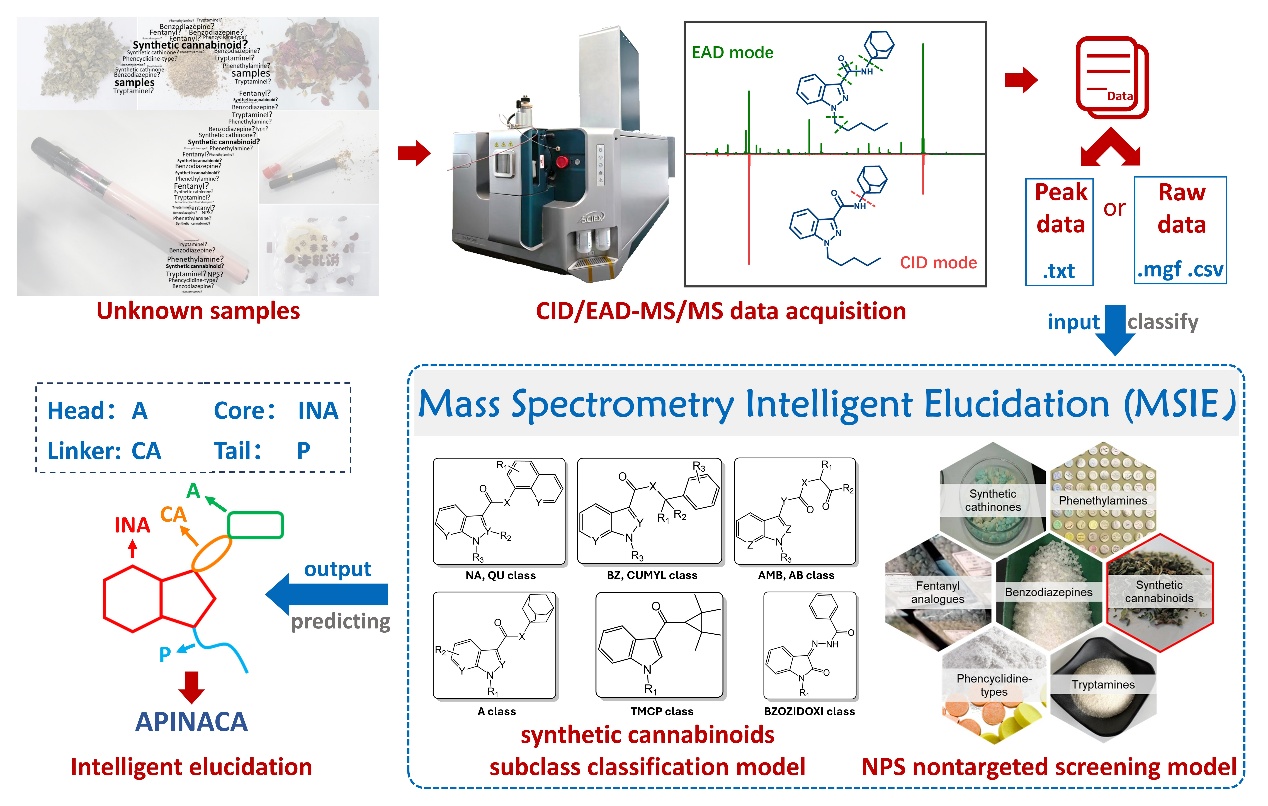 近日,公司蓝鲸体育苏梦翔/狄斌团队与公安部禁毒情报技术中心花镇东研究员团队合作,在学科顶尖期刊Analytical Chemistry(IF:)发表了题为A Novel Nontargeted Screening Strategy for New Psychoactive Substances: A Case Study of Synthetic Cannabinoids Based on Electron-Activated Dissociation High-Resolution Mass Spectrometry and Intelligent Elucidation的最新研究成果。蓝鲸体育苏梦翔教授、狄斌教授和公安部禁毒情报技术中心花镇东研究员为本文共同通讯作者,2023级博士生黄钰和2021级硕士生杜宇为本文共同第一作者。