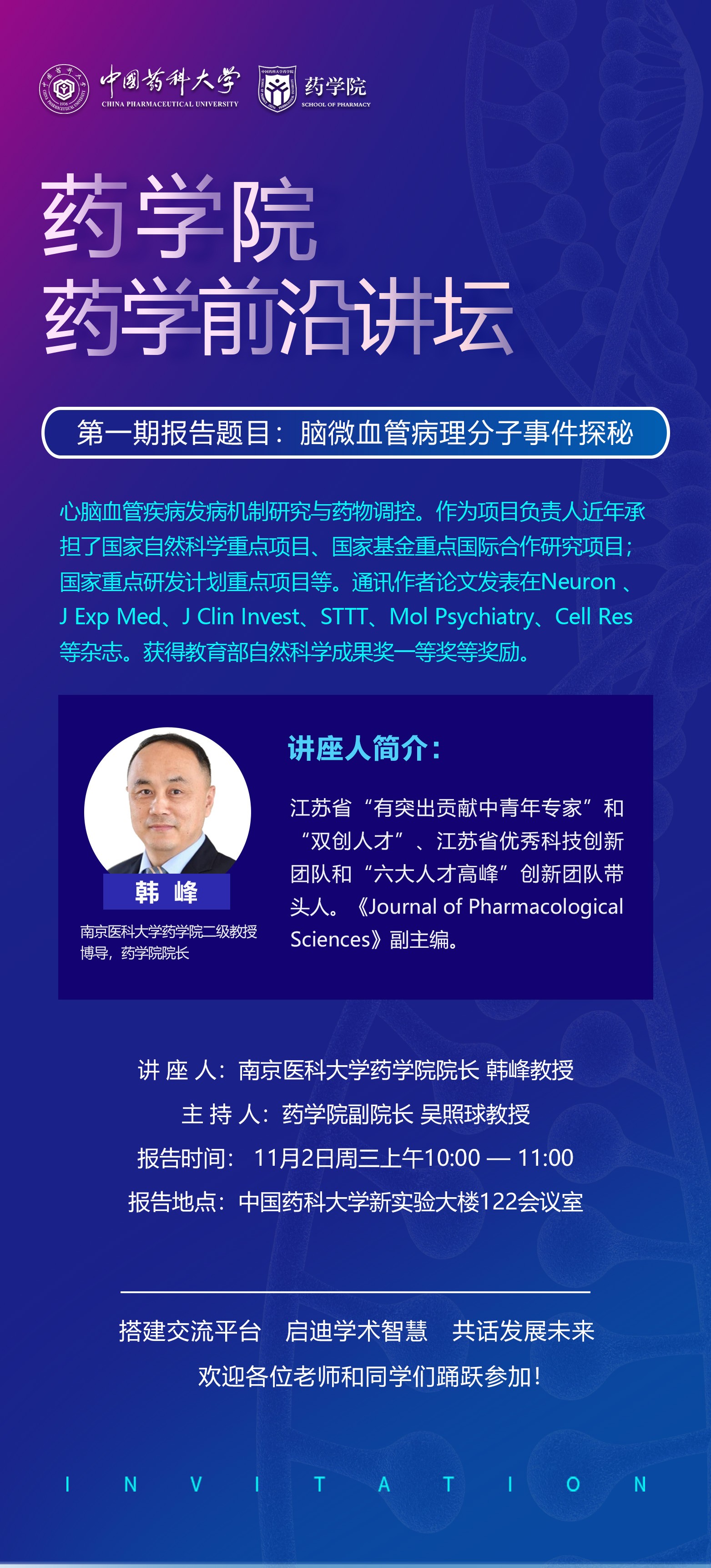 蓝鲸体育第一期药学前沿讲坛通知