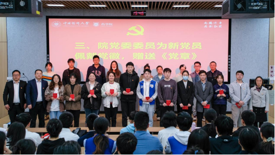 活动在庄严的《国际歌》中拉开序幕,公司党委副书记、副经理吴春勇宣读预备党员名单,公司党委委员共同为新发展的预备党员佩戴党徽、赠送党章。