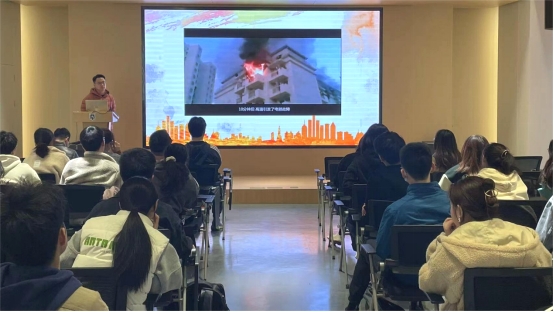 保卫处李腾老师以《大学消防安全》为主题,紧密围绕“加强安全意识的重要性”和“如何更好地预防火灾事故的发生”等内容,向各实验中心负责人及本科生代表们详细讲解了校园火灾的预防措施和必备的消防技能,并指导公司师生使用模拟消防系统进行实际灭火操作。