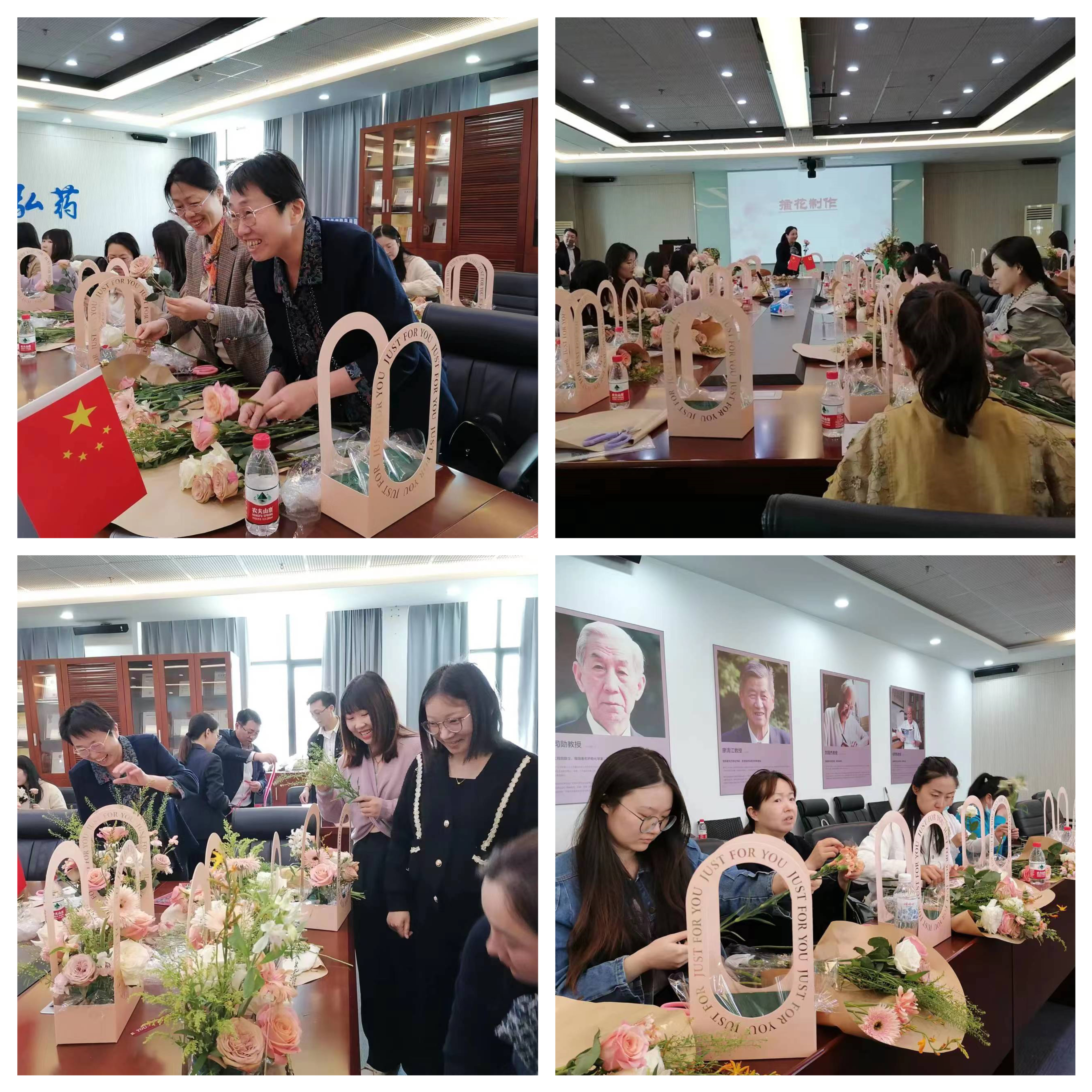 活动现场,花艺老师为大家介绍了插花艺术、造型搭配及色彩应用。随后,在操作中,教职工们跟着花艺老师的步骤,认真修剪、插篮、调整,再经过精心妆点,一束束普通的鲜花变成了一件件精美的花艺艺术品。大家欣赏着自己的作品,充满成就感和喜悦感,同时也感受到了鲜花带来的愉悦心情。