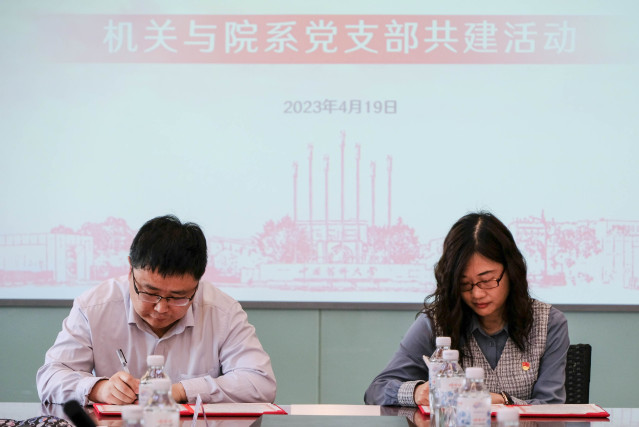 为深入学习贯彻习近平新时代中国特色社会主义思想和党的二十大精神,充分实现校内资源优势互补,提升基层党建工作能力,4月19日,科技处与期刊编辑部联合党支部(以下简称联合党支部)与蓝鲸体育药理系教工党支部举办党支部共建仪式。药公司党委书记张仕英,联合党支部书记、科技处处长李志裕及两支部党员代表出席活动,活动由联合党支部副书记张静主持。
