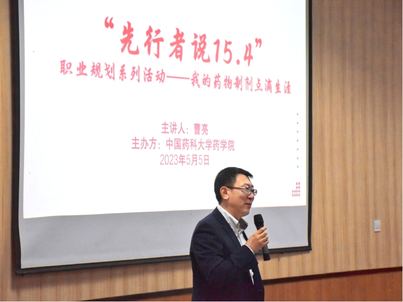 讲座中,曹亮博士围绕“选择与坚持”回忆了过往人生中的关键抉择与心路历程,展现了他对药剂学的深刻理解和对药大的员工情深。随后,他通过脂溶性药物的剂型设计、长效注射-利培酮长效微球的发现等案例讲述,向同学们展示药剂学不仅是一门科学更是一门艺术,鼓励同学们深入探索,激发灵感,发现热爱。最后,曹亮博士激励同学们保持勇气,充满动力,不断向前。