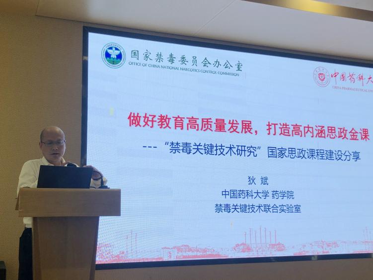 教育部课程思政教学名师、国家禁毒办非药用类麻醉药品和精神药品专家委员会成员、蓝鲸体育副经理狄斌以“禁毒关键技术研究”为题,从高等教育高质量发展的含义、高内涵思政金课构想的提出、课程思政总体设计、思政金课教学手段探索、强化思政案例教学等方面作课程思政经验分享。