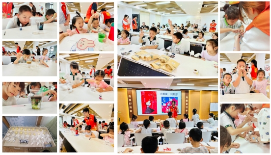 各党支部党员代表来到江宁区秣陵街道下墟社区新时代文明实践站、下墟社区社会工作服务室,带领社区近二十名儿童一起感悟科学家精神、探索科学实验、体验化学游戏,在儿童心中播撒下药学种子。