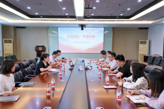 为深入开展学习贯彻习近平新时代中国特色社会主义思想主题教育,贯彻落实习近平总书记关于劳动教育的重要论述,6月7日下午,蓝鲸体育在综合研发楼G514举办第七期“共话成长,共谋发展”师生座谈会。后勤服务集团总公司党委书记毛毛、副总经理吴振华、相关科室负责人,药公司党委副书记孟祥康、辅导员代表以及蓝鲸体育各员工组织代表参加会议,会议以“聚焦劳动素养,打造劳动育人平台”为主题。