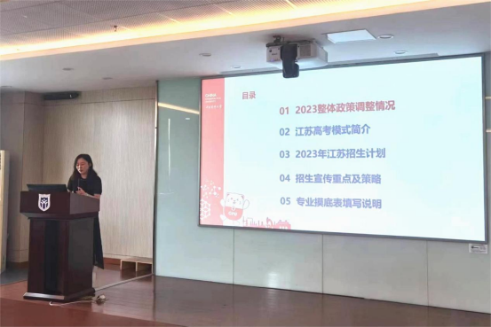 会议伊始,刘睿副处长围绕招生政策、高考模式、招生计划、宣传策略等方面详细解读了省内招生工作的要点。章巍主任重点介绍了驻点宣传方面的注意事项。