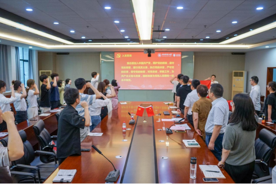 活动伊始,所有毕业生党员代表面向党旗,举起右拳,跟随领誓人,用激昂的声音重温入党誓词。铮铮誓言,是毕业前的一次精神洗涤、一次初心回望,更是一份忠诚承诺、一份责任担当。