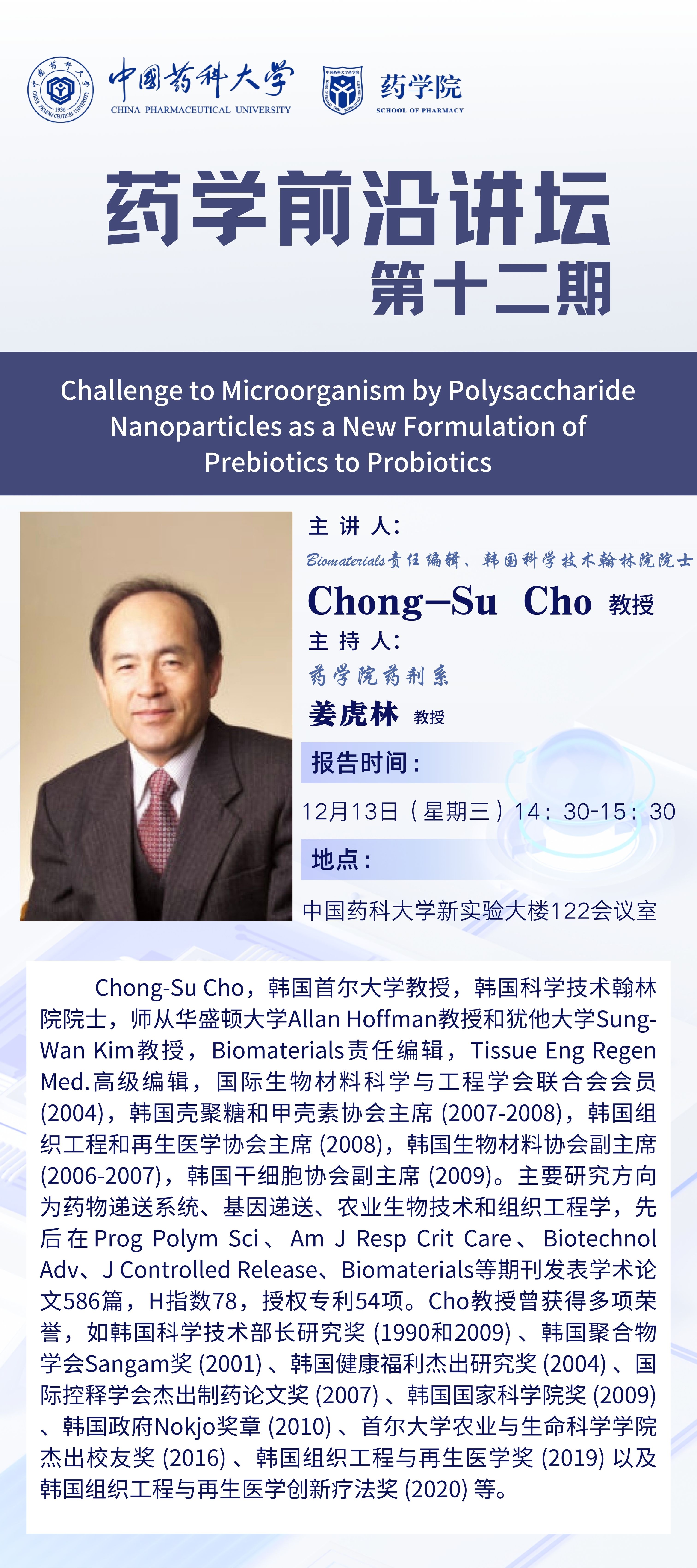 蓝鲸体育第十二期药学前沿讲坛通知